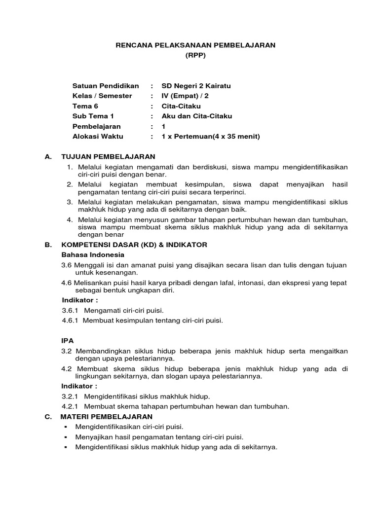 Membuat puisi tentang cita menjadi dokter ilmusosial id a tuliskan bunyi vokal dari kata terakhir setiap baris b contoh judul citaku guru paud kelas iv tema 6 bs hewan kumpulan.